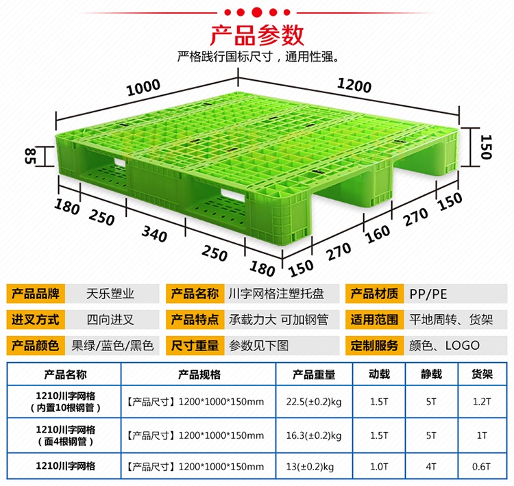 山東天樂塑料科技有限公司,主要生產(chǎn)塑料托盤,塑料周轉(zhuǎn)筐,塑料垃圾桶,銷售木包裝箱木托盤,膠合板托盤,產(chǎn)品使用于汽車、食品、醫(yī)藥、造紙、印刷、電子、電器、化工、紡織、服裝、倉儲物流、環(huán)衛(wèi)等行業(yè)。產(chǎn)品多規(guī)格全價格實惠,大廠家售后保障體系完善。產(chǎn)品品種,以載重量分類,包括:一次 使用的特輕型、輕型、標(biāo)準(zhǔn)型、貨架加重型等適用范圍:食品醫(yī)藥化工紡織汽配廠等行業(yè)倉儲物流運(yùn)輸用